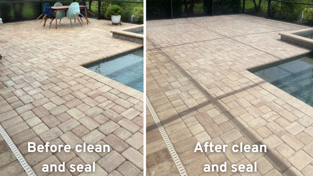 With proper care, a professional sealing treatment lasts 3–5 years on average—sometimes longer on shaded patios or walkways. Florida driveways and pool decks may need more frequent resealing due to sun exposure and water use.